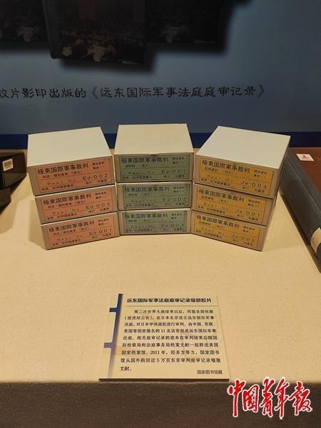 民國文獻(xiàn),是縮微中心正在努力的工作對象。中青報·中青網(wǎng)記者在展覽現(xiàn)場看到一組“遠(yuǎn)東國際軍事法庭庭審記錄縮微膠片”。這是2011年,經(jīng)多方努力,國家圖書館從國外購回的近5萬頁東京審判庭審記錄縮微文獻(xiàn)。