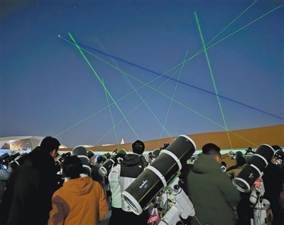 “爸爸,那顆星星好亮!”“是啊,你知道它叫什么嗎?”來自廣東的游客黃慶秋帶著女兒仰臥在觀星椅上,參照著手機里的觀星軟件,為女兒進行講解。“我們是專程來這里看星星的。聽說凌晨還能看到銀河,已經(jīng)把鬧鐘設(shè)置好了。”黃慶秋說。