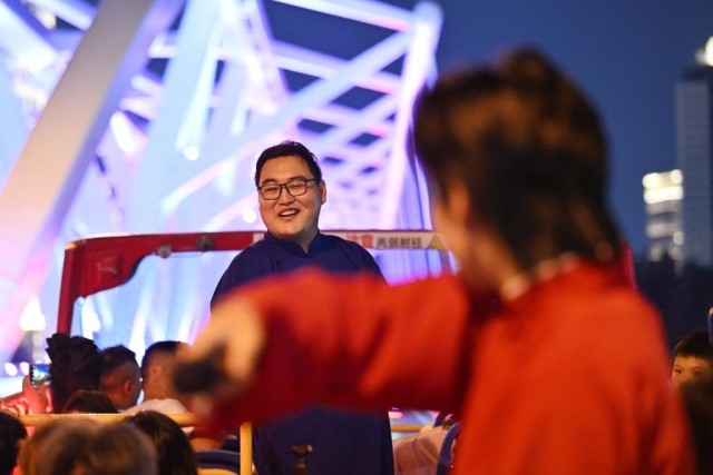 “相聲巴士”的定制化夜間游覽線路,將古文化街、鼓樓、意式風情區(qū)、解放橋、天津站世紀鐘、津灣廣場、望海樓、“天津之眼”摩天輪等20余處地標景點串聯(lián)成線。演員在途中結合景點進行講解,讓觀眾除了能享受海河兩岸夜景和沉浸式津味相聲外,還能深入了解天津歷史,品味天津特色文化。