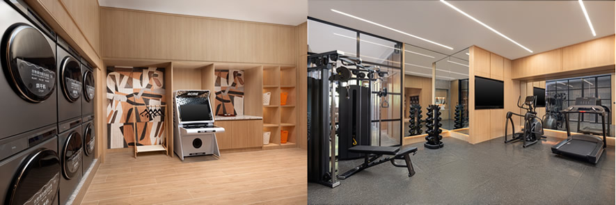 暢享“智慧”家居也是Atwell筑格酒店的重要特色之一。酒店配備全屋智能操控系統(tǒng),支持語音控制與一鍵客服,賓客可輕松調(diào)節(jié)溫度與燈光,使用智能家電,并配備隨心調(diào)節(jié)高低的升降桌以滿足不同場景需求。浴室設(shè)有熱毛巾架,電視支持智能投屏,賓客可獲得更順暢的居停體驗。酒店還設(shè)有“洗躍”健身洗衣空間,配有座位、游戲機等設(shè)施,打造具備洗衣和健身功能的社交休閑區(qū),讓入住體驗更加豐富自在。