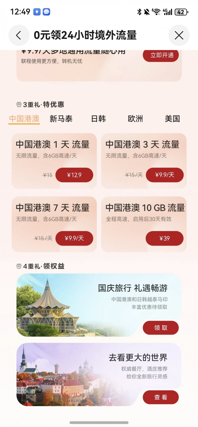 此外,天際通第三重禮·特優(yōu)惠——大流量特惠,多人共享,國(guó)慶期間,天際通同時(shí)上線特惠流量套餐包,提供按天付費(fèi)和按流量付費(fèi)多種套餐,適用于中國(guó)香港&澳門、新馬泰、日韓等高頻目的地,即買即用;支持中國(guó)香港&澳門、新馬泰、日韓、歐洲、美國(guó)等地的共享10GB大流量包,熱點(diǎn)共享,全家出行或結(jié)伴旅游無(wú)需頻繁續(xù)費(fèi),大容量流量一次囤夠。