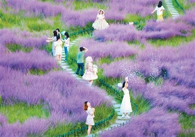 廣西壯族自治區(qū)南寧園博園景區(qū),粉黛亂子草盛情綻放,吸引了許多游客前來(lái)打卡拍照。