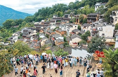 江西省婺源縣篁嶺村“曬秋”美景,吸引眾多游客前來(lái)游覽。