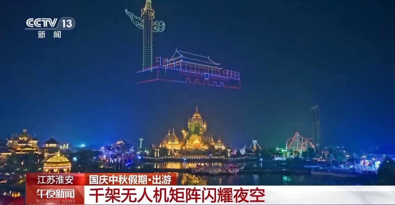 夜幕降臨,在江蘇淮安西游樂園,1600架無人機同步升空,組成“我愛你中國”、天安門、璀璨中國等造型圖案,科技與光影的碰撞,譜寫了一曲璀璨奪目的 “空中詩篇”。全新升級的“國慶煙花大會”更是將現場氛圍推向高潮。絢爛的煙花與水幕交織相映,形成了一幅立體畫卷,營造出了既浪漫又熱烈的節(jié)日氛圍。