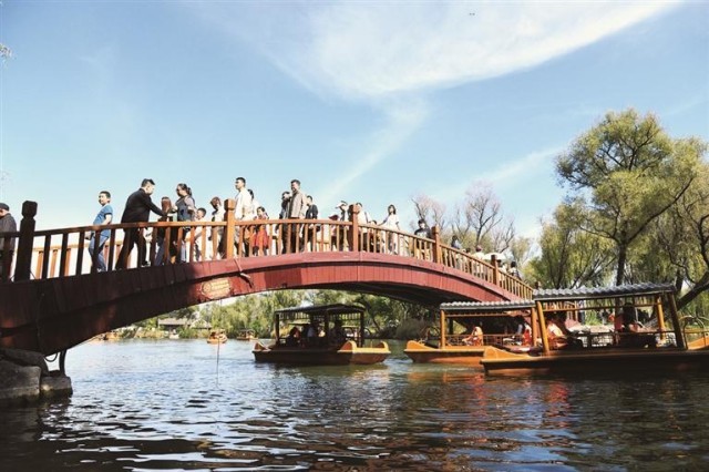 為保障游客游玩體驗,我市針對“雙節(jié)”旅游高峰,承德避暑山莊景區(qū)制定專項工作方案與預案,在麗正門加裝引導護欄保障游客有序入園,在正宮區(qū)、湖區(qū)的道路狹窄處、橋梁處增加疏導人員,通過監(jiān)控關注煙雨樓、金山、熱河泉等景點客流,人員聚集時即刻疏導、廣播分流;同時對一線工作人員開展服務禮儀培訓,推進“笑臉行動”,全面維修維護旅游服務設施、清掃環(huán)境衛(wèi)生,并調配全系統(tǒng)兩級機關人員補充到一線崗位,用細致服務讓游客游得舒心、玩得安心。