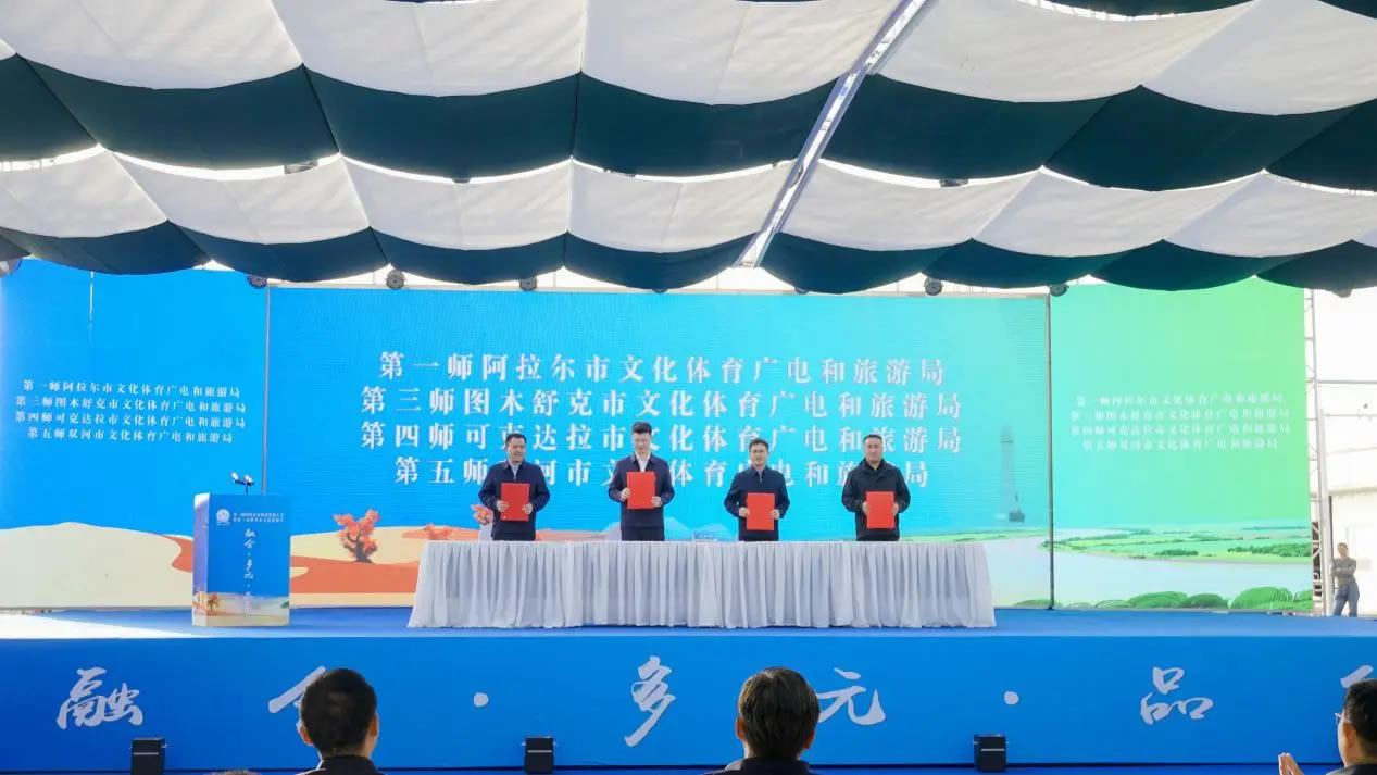 當天,第一師阿拉爾市旅游發(fā)展大會暨第三屆塔里木文化旅游節(jié)文旅客商推介會同步舉辦。第一師阿拉爾市文化體育廣電和旅游局分別與第三師圖木舒克市、第四師可克達拉市、第五師雙河市的文化體育廣電和旅游局簽署合作共建協(xié)議,在旅游產業(yè)領域深化合作,推動區(qū)域文旅協(xié)同發(fā)展。第一師阿拉爾市文化體育廣電和旅游局、塔里木文旅集團,以及第一師四團、七團、十六團依次登臺,重點推介了涵蓋沙漠探險、生態(tài)觀光、民俗體驗等多個領域的文旅項目。
