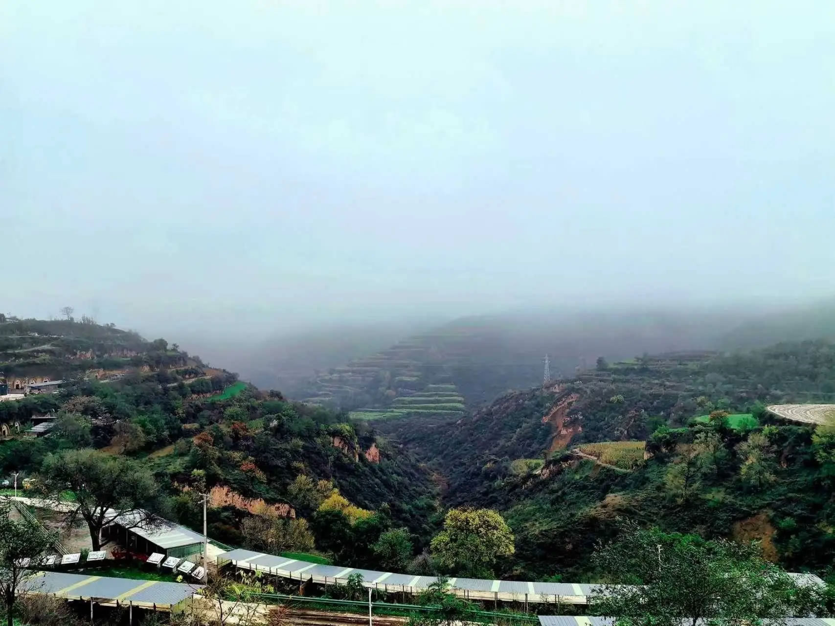 大寨鄉(xiāng)海拔1540米、北緯35.38度,屬溫帶半干旱氣候,四季分明、風(fēng)景宜人,豐富的水資源和廣袤的植被共同構(gòu)筑了獨特的局部小氣候,使得大寨鄉(xiāng)在降雨之后,常常云霧繚繞。如紗的霧氣縈繞于山巒溝壑之間,將遠(yuǎn)山近樹渲染成一幅流動的水墨畫。