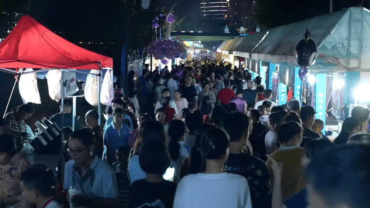 活動現(xiàn)場,產(chǎn)品展銷、非遺展演、親子游樂、特色美食四大板塊同步開啟,非遺火壺、浪漫銀河冷焰瀑布秀、非遺打鐵花等輪番上演;顒邮淄肀阄忻裼慰统5000人次,叫賣聲、音樂聲交織,摩肩接踵的人群中涌動著消費熱潮。