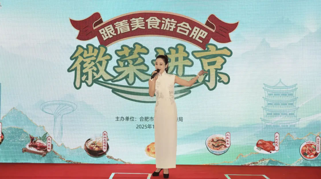 18:30,活動(dòng)正式拉開(kāi)帷幕,美食宣傳片帶觀眾在線“品嘗”徽味的獨(dú)特魅力和徽廚的匠心故事;現(xiàn)場(chǎng)演繹的黃梅戲唱腔婉轉(zhuǎn),將江淮柔情融入京華夜色;合肥市文旅局代表登臺(tái)推介,帶眾人感受合肥這座“科里科氣”與“文里文氣”并存的城市魅力。