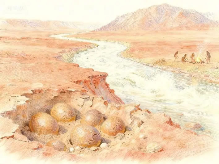 研究顯示,青龍山段古漢江河床曾經(jīng)歷多次構(gòu)造抬升(單次60米至80米)、河道北移及河谷下切,現(xiàn)存山頂325米級(jí)階地與漢江現(xiàn)河床(海拔僅170米)形成鮮明對(duì)比。這一演化過(guò)程不僅塑造了青龍山獨(dú)特的地貌,更可能成為全球罕見(jiàn)“埋藏淺、出露廣”的恐龍蛋化石群形成的關(guān)鍵因素。