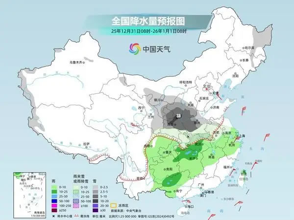 在這輪跨年雨雪過程中,甘肅東部、陜西中南部、山西南部、河南西部、湖北西北部等地為降雪核心影響區(qū)域,上述地區(qū)新增積雪深度可達2至10厘米,局地或超10厘米。正值元旦前后,福銀高速、包茂高速、連霍高速等部分路段可能出現(xiàn)積雪、結(jié)冰現(xiàn)象,公眾需警惕道路濕滑、能見度降低等對出行的不利影響,駕車外出請保持距離、減速慢行,注意交通安全。