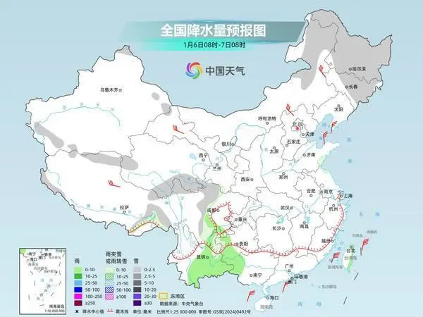 昨天,南方有大范圍雨雪現(xiàn)身,四川到長江中下游地區(qū)、華南北部地區(qū)以小雨或小雪為主,安徽、江蘇部分地區(qū)雨雪交雜。其中,安徽中部、貴州西部等地部分地區(qū)出現(xiàn)小雪或雨夾雪、局地中雪或大雪。