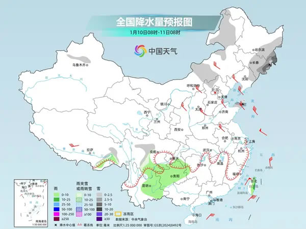 具體來(lái)看,中央氣象臺(tái)預(yù)計(jì),今天,內(nèi)蒙古中東部、東北地區(qū)中東部、新疆北疆沿天山地區(qū)、西藏東南部、河北北部、川西高原北部等地部分地區(qū)有小到中雪或雨夾雪,其中,黑龍江東南部、吉林東部、山東半島等地部分地區(qū)有大雪。貴州、四川南部、云南東部、臺(tái)灣島東部等地部分地區(qū)有小到中雨。