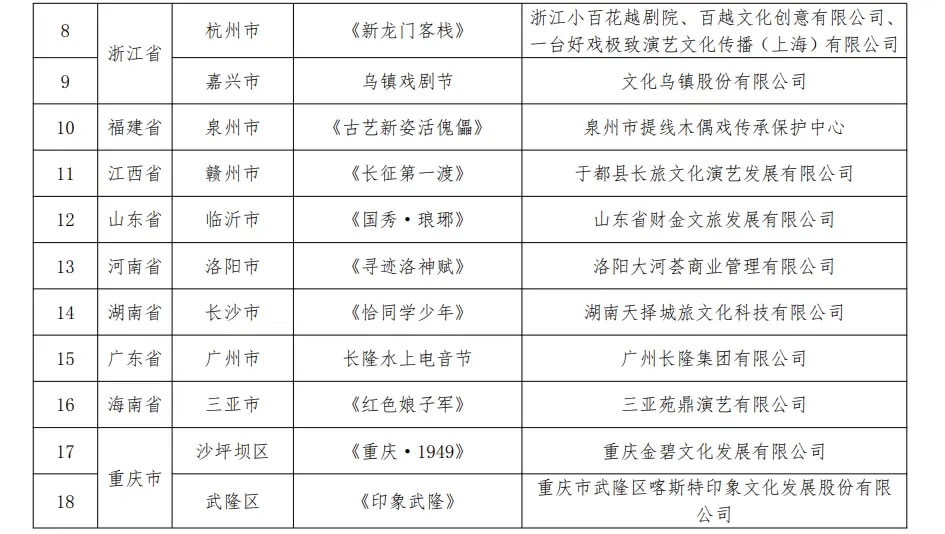 通知指出,各地文化和旅游行政部門要加強(qiáng)對入選項(xiàng)目的指導(dǎo)、支持與服務(wù),加大宣傳推廣力度,引導(dǎo)本地旅游演藝項(xiàng)目準(zhǔn)確定位,堅(jiān)持內(nèi)涵發(fā)展、可持續(xù)發(fā)展,依法演出經(jīng)營,在豐富文旅產(chǎn)品供給、促進(jìn)文旅消費(fèi)升級、帶動(dòng)區(qū)域發(fā)展中發(fā)揮更大作用。