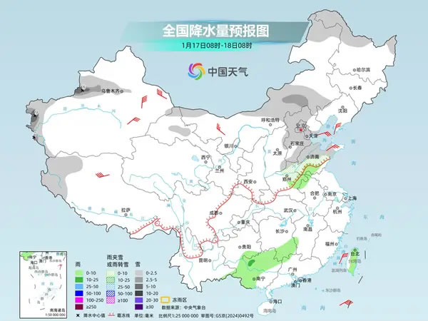 后天,華北東部和南部、黃淮大部、內(nèi)蒙古東北部、黑龍江西北部、吉林東部、陜西南部、甘肅南部、新疆沿天山西部地區(qū)和南疆西部山區(qū)、西藏北部等地部分地區(qū)有小到中雪或雨夾雪,其中,山東中北部有大雪,局地暴雪;黃淮南部、江淮、江漢、西南地區(qū)東部、湖南中北部、臺灣島等地部分地區(qū)有小雨。