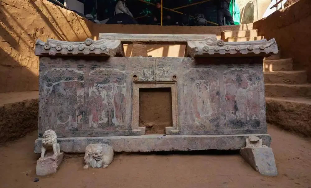 這是西安百花村北周成夫人墓中發(fā)現(xiàn)的石槨。(西安市文物保護考古研究院供圖)