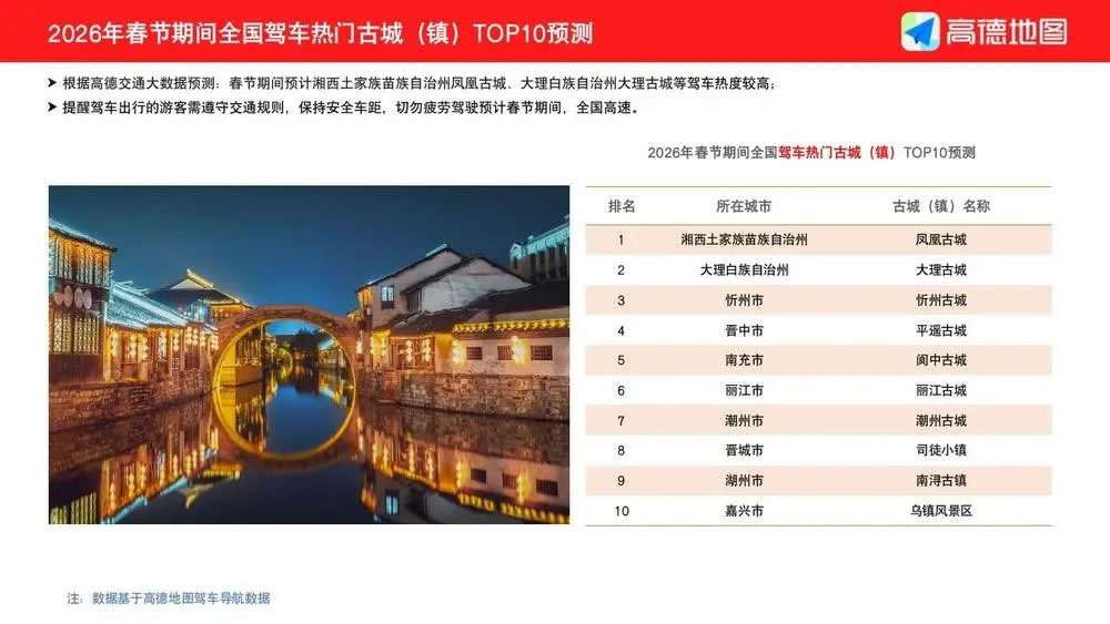除了傳統(tǒng)的返鄉(xiāng)團(tuán)圓,今年的“旅行過年”也呈現(xiàn)出鮮明的主題化特征。報告預(yù)測,廣州、重慶、成都、北京、杭州等將成為十大熱門自駕游城市,而在目的地選擇上,則呈現(xiàn)出三大熱門主題: