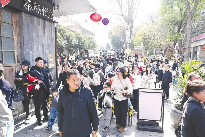 2月20日,武漢市武昌區(qū)曇華林人聲鼎沸,大批外地游客前來領(lǐng)略武昌老城的獨(dú)特魅力。 (湖北日?qǐng)?bào)全媒記者 何宇欣 攝)