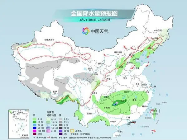 明天,新疆南疆盆地和南疆西部山區(qū)、西藏南部和東部、青海南部和西部、甘肅河西和西南部、川西高原北部、黑龍江東南部、吉林東部等地部分地區(qū)有小到中雪或雨夾雪,其中,西藏西南部等地部分地區(qū)有大到暴雪。西藏東南部、貴州東部、湖南中西部等地部分地區(qū)有中到大雨,局地有暴雨。