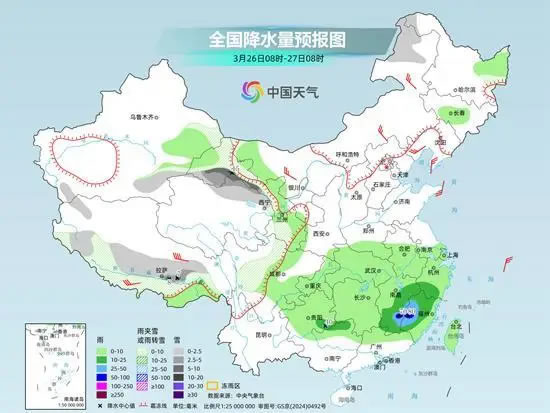 隨著低空急流明顯增強(qiáng),南方降雨進(jìn)入顯著時(shí)段。監(jiān)測(cè)顯示,25日8時(shí)至26日6時(shí),湖北西南部、貴州東部、湖南北部、江西北部等地出現(xiàn)中到大雨,局地暴雨。此外,新疆東部、青海東部和南部、西藏東部、甘肅東南部、四川西北部等地部分地區(qū)出現(xiàn)小到中雪或雨夾雪,新疆、甘肅等局地大雪或暴雪。