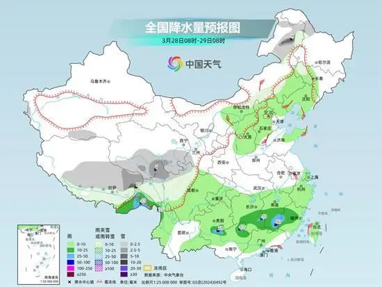 具體來(lái)看,中央氣象臺(tái)預(yù)計(jì),今天,新疆南疆盆地東部、西藏中南部、青海北部、甘肅河西和西南部、川西高原北部、內(nèi)蒙古東北部等地部分地區(qū)有小到中雪或雨夾雪,其中,西藏東南部、青海北部、甘肅河西等地部分地區(qū)大雪,局地暴雪;江南中東部、貴州東南部、廣西北部等地部分地區(qū)有中到大雨,其中,江西東南部、福建西部等地部分地區(qū)有暴雨。
