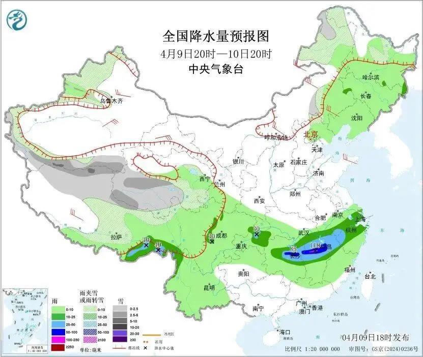 今明天(4月10日至11日),江南等地部分地區(qū)仍是降雨連連,湖南、江西等地部分地區(qū)有暴雨或大暴雨,需防范連續(xù)降雨和局地較強降雨可能引發(fā)的次生災害。隨著陰雨增多,江南一帶今天氣溫下降,華南炎熱天氣仍將持續(xù),部分地區(qū)有高溫天氣,北方氣溫多起伏,公眾請適時調整著裝。