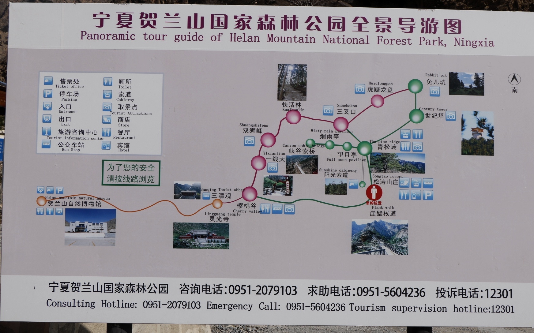 賀蘭山陽(yáng)光索道,是建設(shè)在蘇峪口國(guó)家森林公園內(nèi)的寧夏第一條高山旅游觀光索道。它全長(zhǎng)1200米,高差近百米,往返運(yùn)行約20分鐘。乘坐索道,從山腳直達(dá)風(fēng)景秀麗的“青松嶺”,輕松悠閑的觀山岳、聽(tīng)松濤、看飛瀑,盡情領(lǐng)略賀蘭山的自然風(fēng)光。