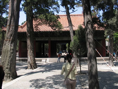 據(jù)《孟子》記載:“孟子曰:‘伯夷,圣之清者也;伊尹,圣之任者也;柳下惠,圣之和者也;孔子,圣之時(shí)者也。’”意思是說,在圣人之中孔子是最適合時(shí)代的。據(jù)此,清世宗于雍正八年(1730年)欽定孔廟正門名“圣時(shí)門”。圣時(shí)門始建于明永樂十三年(1415年),3間,弘治年間擴(kuò)為5間中設(shè)拱門3 券,碧瓦歇山頂,四周是深紅的墻皮,券內(nèi)是杏黃的墻里,前后石階上各有石刻龍陛。由拱門內(nèi)望,令人有深邃莫測(cè)之感。