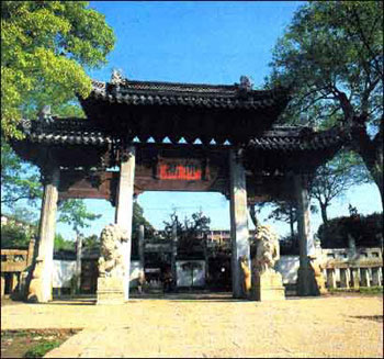 孟子對(duì)孔子有過這樣的評(píng)價(jià):“孔子之謂集大成。集大成者,金聲而玉振之也。金聲也 者,始條理也;玉振之也者,終條理也”。“金聲”、“玉振”表示奏樂的全過程,以擊鐘(金聲)開始,以擊磐(玉振)告終。以此象征孔子思想集古圣先賢之大成,贊頌孔子對(duì)文化的巨大貢獻(xiàn)。因此,后人把孔廟門前的第一座石坊命名為“金聲玉振”。