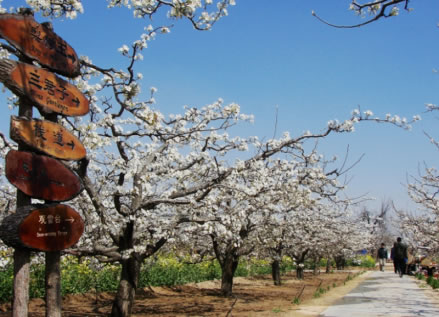 位于冠縣蘭沃鄉(xiāng)韓路村北,地處冀魯豫三省交界處的黃河故道,屬國家AAA級景區(qū)、全國休閑農(nóng)業(yè)與鄉(xiāng)村旅游示范點、省級農(nóng)業(yè)旅游示范點、山東省最具成長力景區(qū)、“到山東不可不去的100個地方”之一。景區(qū)面積1.1萬畝,精品園500畝,有大雪花梨、秋白梨、安梨、紅宵梨、五香面梨、鵝梨、雪花梨、綠寶石等近三十個品種。梨園的梨樹的栽培歷史之久,面積之集中,樹齡之大,品種之多,保護管理之好,均為全國之最,故而稱為中華第一。