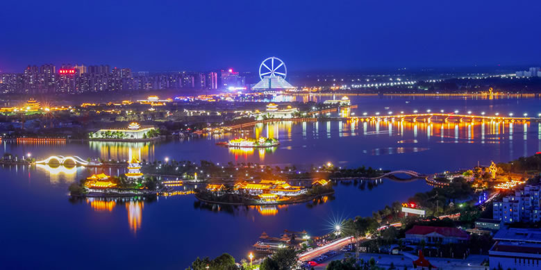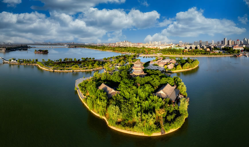 國家4A級旅游區(qū)、山東省重點服務(wù)業(yè)園區(qū)、山東省生態(tài)漁業(yè)示范園、國家垂釣基地,也是“江北水城·運河古都——生態(tài)聊城”城市品牌的核心區(qū)域。位于聊城市中心城區(qū),由10個湖區(qū)和20塊水面組成,總面積6.3平方千米,湖岸線長達16千米,有“南有西子,北有東昌”之美譽,是中國江北地區(qū)罕見的大型城內(nèi)湖泊。東昌湖湖始于北宋熙寧三年(1070年),水深平均達3米,最深處5米。水質(zhì)清澈,景色宜人,適宜水上游樂項目的開發(fā)與建設(shè)。
