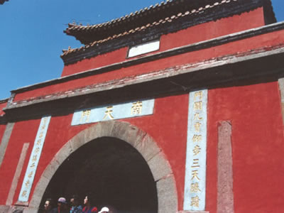 碧霞祠位于岱頂,是泰山女神碧霞元君祠宇,始建于宋大中祥符元年(公元1008年)。祠以山門為界,分內外兩院,內院正殿供奉碧霞元君銅像,銅瓦覆頂,東西配殿鐵瓦覆蓋。