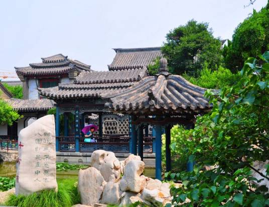 十笏園,又稱丁家花園,位于山東省濰坊市濰城區(qū)胡家牌坊街345號,原為明嘉靖年間刑部侍郎胡邦佐故居,清光緒十一年(1885年)改建為園林。