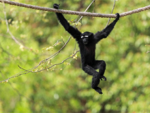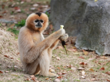 白眉長(zhǎng)臂猿棲息于熱帶或亞熱帶的高山密林之中。額部附近有一道明顯的白紋,如同白色的眉毛,因此得名。