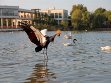 天鵝湖棲息著各類(lèi)天鵝、鵜鶘等二十余種近千羽水禽和涉禽。早晨和傍晚的天鵝湖最為熱鬧,鳴聲嘹亮是天鵝湖的特色。