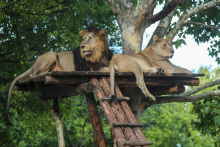 非洲獅區(qū)是車(chē)入?yún)^(qū)的一部分。非洲獅是現(xiàn)存平均體重最大的貓科動(dòng)物,雄獅有鬃毛,而雌獅沒(méi)有。獅群中,雌獅負(fù)責(zé)捕獵,雄獅負(fù)責(zé)巡視領(lǐng)地和與外來(lái)雄獅進(jìn)行戰(zhàn)斗。非洲獅區(qū)行為展示時(shí)間為:周一至周五:12:00、13:00、14:00;雙休及節(jié)假日:11:00、12:00、13:00、14:00。