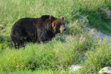 熊區(qū)是車(chē)入?yún)^(qū)的一部分。熊區(qū)模擬自然生態(tài)環(huán)境建設(shè),設(shè)置巖石山體、池塘溝渠;種植了喬木和灌木,給棕熊和黑熊更多的自由活動(dòng)的空間。