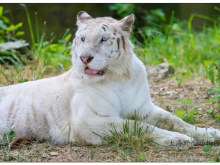 白虎領(lǐng)地展區(qū)位于車(chē)入?yún)^(qū),展區(qū)模擬白虎原生態(tài)的生存環(huán)境。白虎是白化的孟加拉虎,眼睛通常是藍(lán)色或琥珀色,鼻子粉紅色,皮毛或奶油色,條紋有黑色、灰色或巧克力色。