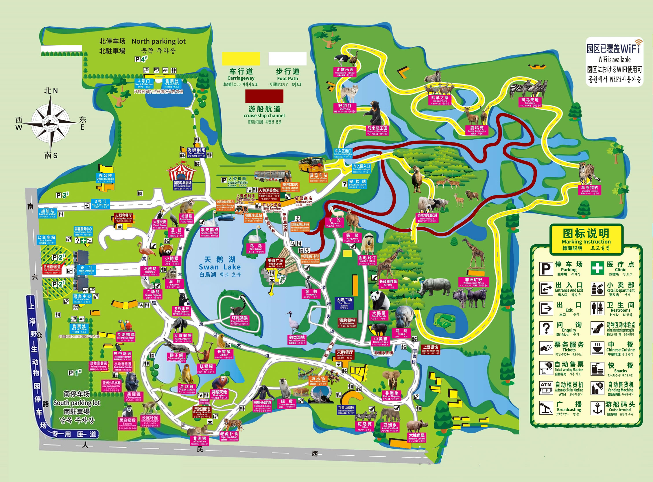 上海野生動(dòng)物園現(xiàn)有車(chē)入?yún)^(qū)、步行區(qū)兩大區(qū)域。車(chē)入?yún)^(qū)分布著奇妙的亞洲、非洲曠野、優(yōu)雅長(zhǎng)頸鹿、最美閃電俠、草原霸主、荒野大力熊、森林之王、白虎領(lǐng)地、野狼谷、馬來(lái)熊王國(guó)10大主題區(qū)域。步行區(qū)則分布著大熊貓館、鶴類(lèi)濕地、火烈鳥(niǎo)展區(qū)、企鵝館、天鵝湖、羊駝苑、紅猩猩館、中美貘館、小動(dòng)物樂(lè)園、鸚鵡館、河馬館、白眉長(zhǎng)臂猿展區(qū)、大食蟻獸展區(qū)、鱷魚(yú)島、狐猴島、浣熊展區(qū)、金絲猴島、飛熊山莊、綠猴區(qū)、白虎展區(qū)、松鼠猴、小熊貓區(qū)、黑猩猩館、袋鼠坡、長(zhǎng)頸鹿雅苑、亞洲象展區(qū)、金毛羚牛館、國(guó)禮非洲獅展區(qū)、熱帶鳥(niǎo)園、斑馬苑、非洲象展區(qū)、老虎撲食區(qū)、白頰長(zhǎng)臂猿島、藍(lán)鶴、大獨(dú)角犀、大嘴長(zhǎng)廊、靈猴天地、亞洲小爪水獺展區(qū)、太陽(yáng)廣場(chǎng)共39個(gè)館區(qū)。