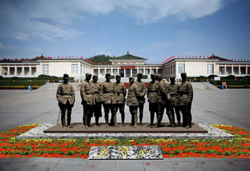 組雕于2009年9月26日落成,反映了抗戰(zhàn)時期朱德、彭德懷、葉劍英、林彪、聶榮臻、羅榮桓、劉伯承、徐向前、賀龍、鄧小平、左權(quán)共11位八路軍將領(lǐng)的形象,由清華大學美術(shù)學院教授,雕塑家李象群設(shè)計制作,長10m、寬3.5m、高3.8m。截止2009年是國內(nèi)展示人物最多、體量最大的領(lǐng)袖群雕。