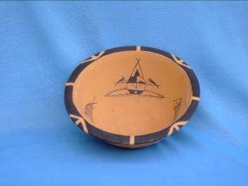 繪畫圖案古樸、簡練,可分三大類:一類為象生性圖案,如張口作吞食狀的魚、悠閑的鹿、搜索食物的蛙等動物紋,還有植物紋。這些象生圖案同史前人類的生活息息相關,形態(tài)生動的動植物紋樣是農(nóng)耕和漁獵生活的反映。第二類為幾何圖案,有三角形,方格紋、編織紋等,這類圖案多在缽、罐、盆、壺類器皿外璧上部,許多缽類器口緣外側(cè)繪黑色寬帶紋,部分大口淺腹器皿的彩陶圖案多繪在內(nèi)壁上,小口器的圖案則繪在口唇和肩腹部,這些部位多是容易看得見的地方,多數(shù)圖案清晰,筆畫疏朗,這些幾何圖案中,三角紋是由魚紋圖案變化而來,波折紋則是山或水的寫意。