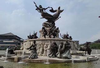 〔舞馬臺〕舞馬之所,舞馬是唐玄宗獨(dú)出心裁的大發(fā)明。《明皇雜錄》稱:“玄宗常教舞馬四百蹄,各為左右,分為部目,為某家寵,某家驕。時(shí)塞外亦有善馬來貢者,上俾之教司,無不曲盡其妙。因命衣以文繡,絡(luò)以金銀,飾其鬃鬣,間雜珠玉。奏其曲謂‘傾杯樂’者數(shù)十回。其馬奮首鼓尾,縱橫應(yīng)節(jié)。又施三重板床,乘馬其上,旋轉(zhuǎn)如飛,……每千秋節(jié)(玄宗生日)命舞于勤政樓下!薄督蜿栭T》詩注:“其舞馬,安祿山亦將數(shù)匹以歸而私習(xí)之。其后,田承嗣代安有存者,一旦于廄上聞鼓聲,頓挫起舞,廄人惡之,舉篲以擊之,其馬尚為怒未妍妙,因更奮擊,宛轉(zhuǎn)曲盡其態(tài)。廝恐以告,承嗣以為妖,遂戮之,而舞馬自此絕焉!倍鸥Α抖冯u殿》詩“斗雞初賜錦,舞馬既登床”即言此。