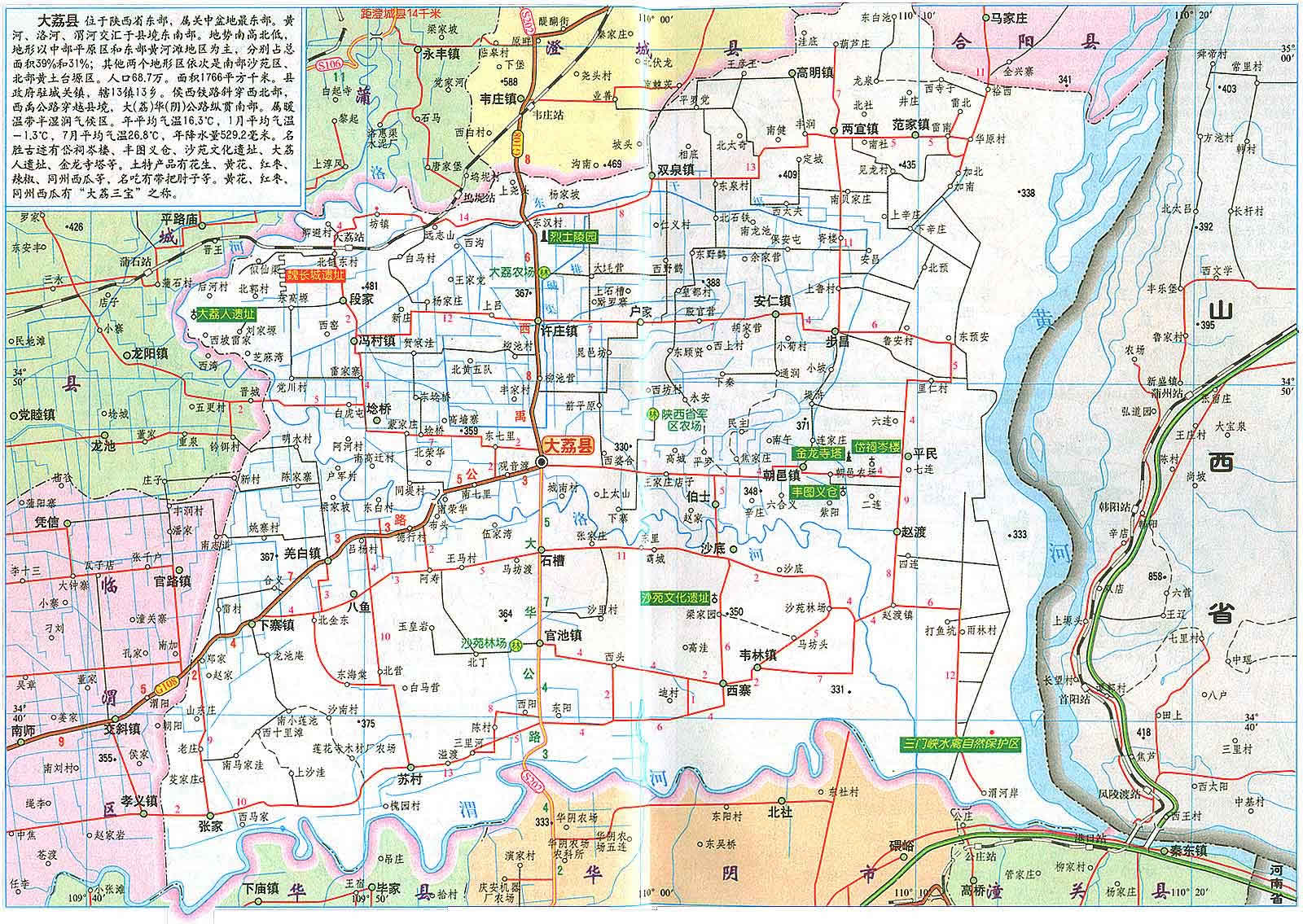 大荔縣位于關中平原東部,是黃 、洛、渭三河匯流之地。南界渭河與潼關、華陰、華縣為鄰,西繞洛河與蒲城、臨渭區(qū)毗連,北沿臺塬與澄城、合陽縣接壤,東瀕黃河與山西永濟相望,素有"三秦通衢"、"三輔重鎮(zhèn)"之稱。大荔縣總面積為1776.1平方公里,全縣轄7鎮(zhèn)26鄉(xiāng),414個行政村??cè)丝?2萬人。