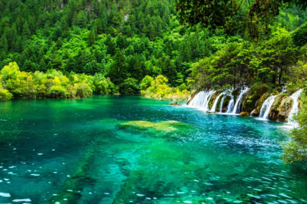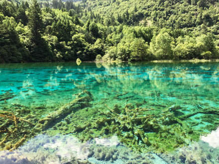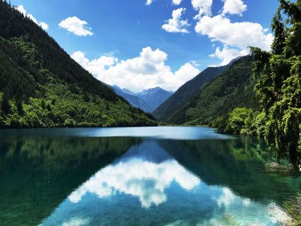 炎炎夏日,似火驕陽(yáng)與粘濕汗水籠罩了整個(gè)大地,而此時(shí)的九寨溝卻截然不同。她掩映在整片整片蒼翠欲滴的濃陰之中,茂盛的林木守衛(wèi)著海子,歡快的流水梳理著樹枝與水草,一切都透著清爽。
