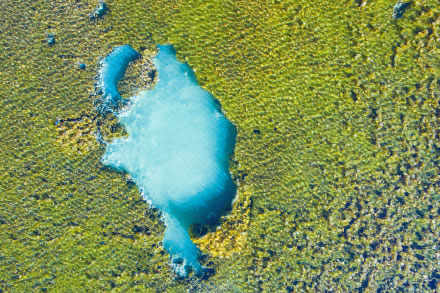 芳草海海拔2910米。沼澤化湖泊,長(zhǎng)540米、寬4—20米、深2—4米,面積5萬(wàn)平方米,有水容積1萬(wàn)立方米。主要接受上游溪水和降水補(bǔ)給,湖底有鈣華漏斗分布。四時(shí)觀景,各具情趣,春季綠草如茵,夏日繁花似錦,深秋一抹金黃,冬日潔白晶瑩。