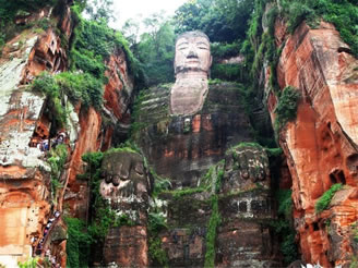 凌云山緊傍岷江,上有凌云寺,建于唐代。依山開鑿大佛一座,通高71米,腳背寬8.5米,為當今世界第一大佛。大佛為唐代開元名僧海通和尚創(chuàng)建,歷時90載完成。大佛為一尊彌勒座像,雍容大度,氣魄雄偉,被詩人譽為“山是一尊佛,佛是一座山”。