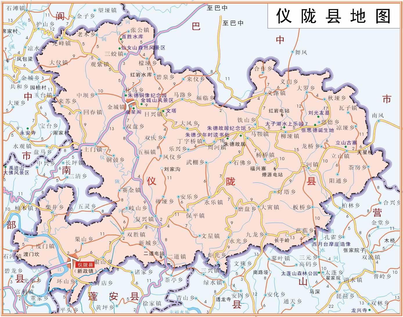 儀隴縣轄29個鎮(zhèn)、29個鄉(xiāng):