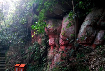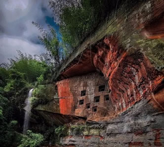 七個洞崖墓群有大小崖洞墓共28座,錯落分布在綿溪河畔的山崖上,其中7墓較集中,其余21墓分散錯落分布。集中的7個墓按北斗七星的形狀排列,均為長方形弧形頂墓室,內(nèi)部有聯(lián)通,墓門呈方形,由外到內(nèi)逐層縮小。墓室、石棺和峭壁上有各種浮雕共189幅,如伏羲女媧、夫妻宴飲、飛龍、舞女、花卉、雜技、燈籠等,工藝精美,同時還有珍稀的文字題記7處,均為漢字,分二類:一為紀(jì)年,有“熹平元年” “延光元年”等;二為姓氏,有“黃是(氏)作此冢一門,?(該字不可辨認(rèn))究苦知者謂我直,不知者奴”等涉及墓主身份的多則題記,涉及“李” “黃” “趙”等姓氏,這也是宜賓境內(nèi)發(fā)現(xiàn)的最早的文字遺存,漢字題記以及漢族姓氏的出現(xiàn),表明這些崖洞墓的主人為古代漢族人。沿著七個洞游步道往山上走大約三十米,有二十余個離地面較近的崖墓,通過臺階可以進(jìn)入墓室內(nèi)部。此外,附近崖壁上還有數(shù)個未完工的古崖墓,將兩千年前的崖墓開鑿過程完好地保留下來,在綿溪河上游幾公里范圍內(nèi)還存在著另外幾十個東漢崖墓。