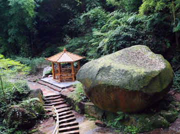 飛泉寺,位于七洞溝旅游景區(qū)綿溪河大峽谷的谷口山麓,四周被近百株百年楠木環(huán)繞,在漢代,因寺廟背后的來龍山上有一條清泉飛流而下,故名飛泉寺。飛泉寺主體全部由楠木建成,根據(jù)寺內(nèi)歷代石碑和長寧、江安縣志記載,該寺始建于漢代,鼎盛于南北朝,于明清翻修,至今已有1700余年。寺中院壩內(nèi)曾有一巨石,斜臥聳立,高約8米,形態(tài)似一只雄壯的犀牛遙望深邃的夜空,有僧人常常在夜間到此打坐悟禪,修行人生,所以取名“犀牛望月”,后在文革期間被毀。