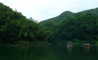 湖中有兩座不同的原形小島。湖水碧綠清澈,四周翠竹掩映,綠草如茵,附近有梅坪、古佛洞、涼風(fēng)洞、照妖鏡、七疊石等古跡。當(dāng)太陽(yáng)起落時(shí),滿(mǎn)湖金色,萬(wàn)道霞光,絢麗多彩。湖上可蕩舟劃筏,湖邊亭閣,也可品茗小酌。夏秋之夜,山巒沉郁而秀朗,清風(fēng)徐來(lái),漣漪翩翩,湖邊納涼閑話(huà),別有情趣。